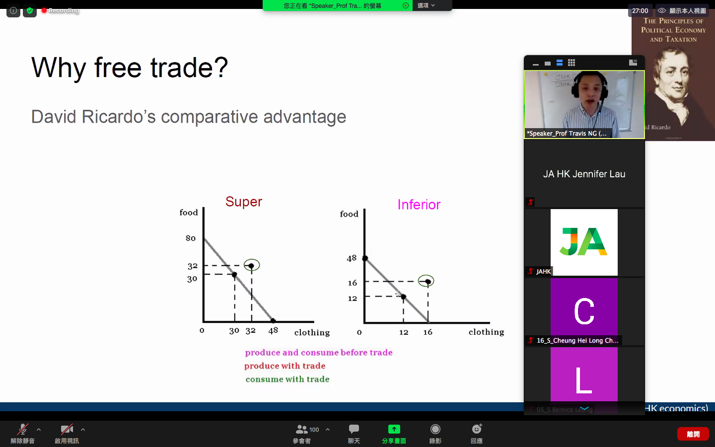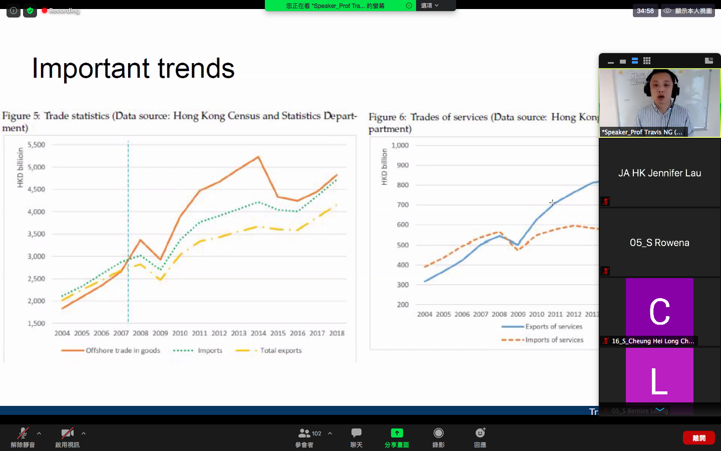 Prof. Travis NG was invited to deliver a talk titled Progress on regional economic cooperation and its implication for Hong Kong, aiming to enhancing students’ awareness and understanding of regional trade and economic cooperation.